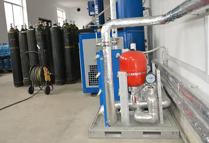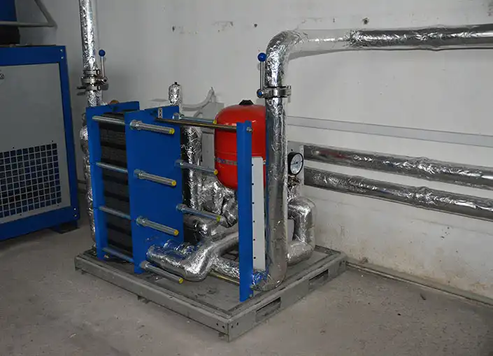 Чиллер моноблочного исполнения для охлаждения минеральной воды перед процессом насыщения углекислотой (карбонизацией).